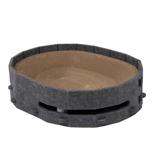 Conlun Griffoir Chat Carton Ovale & Lit 2-en-1 - Grattoir Incurvé Ergonomique pour Repos et Jeu - Carton Ondulé Haute Densité - Protection Canapé Design avec Herbe à Chat (43x33x10cm)