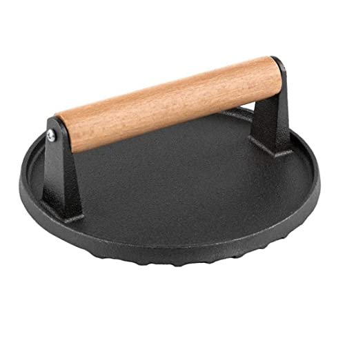 Cash Iron Grill Press - Round Burger Smasher, lourde presse plate | Studio de cuisine robuste avec poignée en bois anti-craquement pour boulettes de viande parfaites, cuisine et presse à viande au