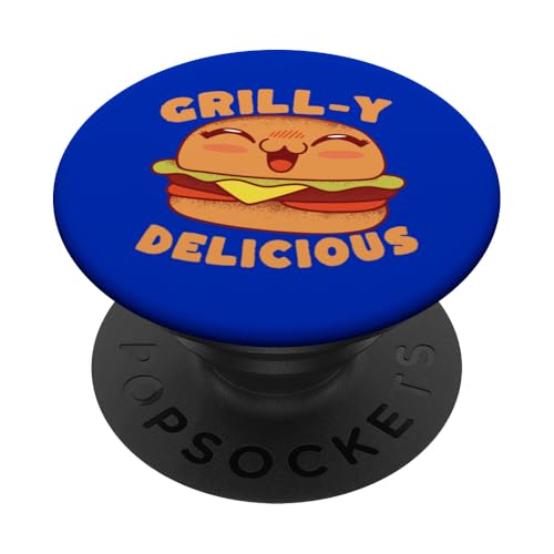 Grill-y Delicious Happy Kawaii Burger Foodie PopSockets PopGrip Adhésif