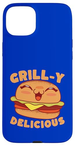 Grill-y Delicious Happy Kawaii Burger Foodie Coque pour iPhone 15 Plus