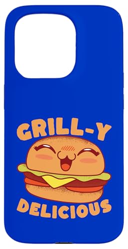 Grill-y Delicious Happy Kawaii Burger Foodie Coque pour iPhone 15 Pro