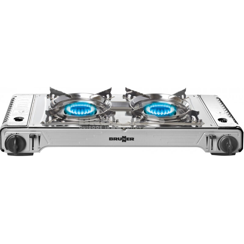 TAINO Barbecue compact à gaz avec table de cuisson en acier inoxydable pour le camping (grill-to-go)