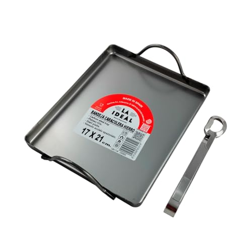 Hostelnovo - Flamme à escargots en fer avec pince - Plateau d'escargot avec 2 poignées - Idéal pour four, grill ou barbecue - 17 x 21 cm
