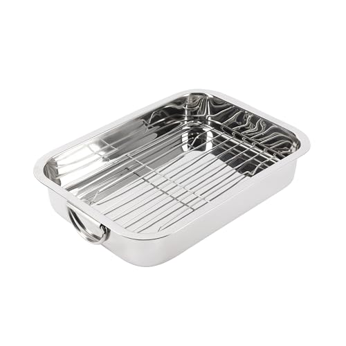 RB RENBERG Plateau Four avec Grill Rectangulaire pour Four - Fabriqué en Acier Inoxydable - Anti-Adhérence Maximum - Taille 37 x 26.5 x 6.3 - Idéal pour Lasagne Gâteau Casserole Couvercles