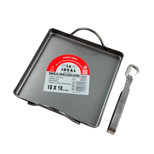 Hostelnovo Flamme à escargots avec pince - Plateau à escargot avec 2 poignées - Idéal pour four, grill ou barbecue - 18 x 18 cm