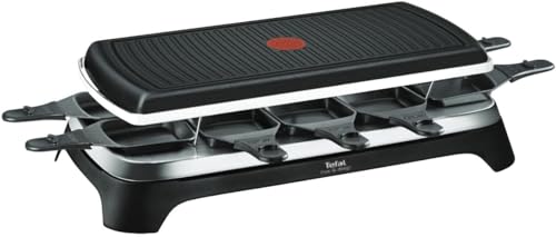 Tefal Appareil à raclette et grill, Revêtement antiadhésif, Fonction Thermo-Spot, 10 coupelles, Gourmet 10 Inox&Design RE458812, Noir
