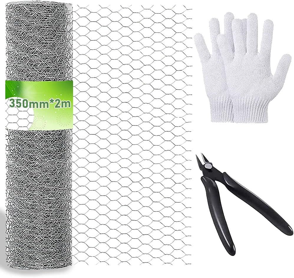 ASFASFq-Grillage a Poule, 350mm x 2m Fil De Fer à Volière Grillage, Treillis Hexagonal Galvanisé, avec Mini Pinces Et Gants, pour Projet d'Artisanat De Bricolage Ou Filet De Jardin en Métal