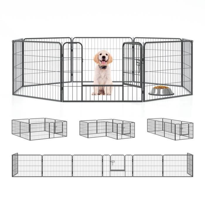 tectake® Parc pour Chien et Petits Animaux Modulable & Pliable Enclos pour Chat extérieur Parc Chiot Cloture Anti Fugue Chien Grillage sans Toit, Portes avec Double verrou