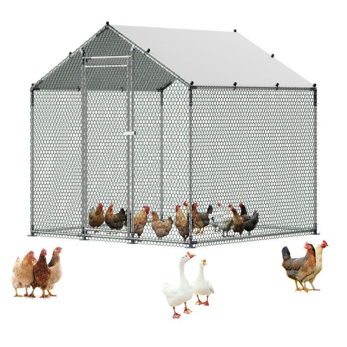 Enclos Poulailler Métal-VEVOR-2x2x2 m Parc Grillagé à Poule Toit en Forme de Pente Grande Cage Extérieur pour Poules Canards