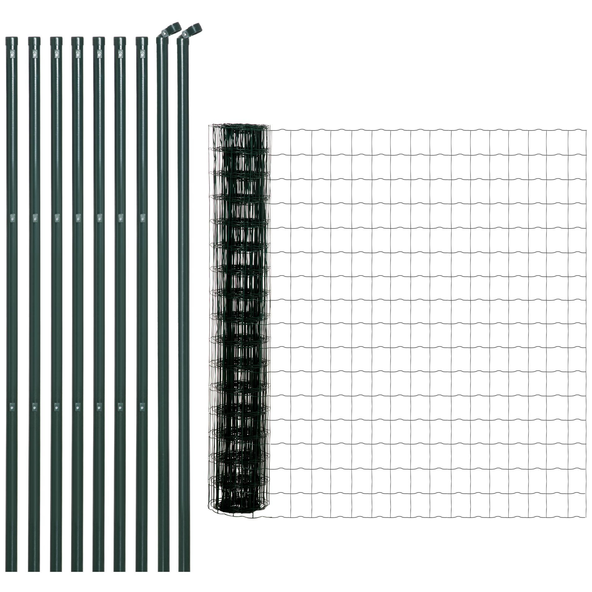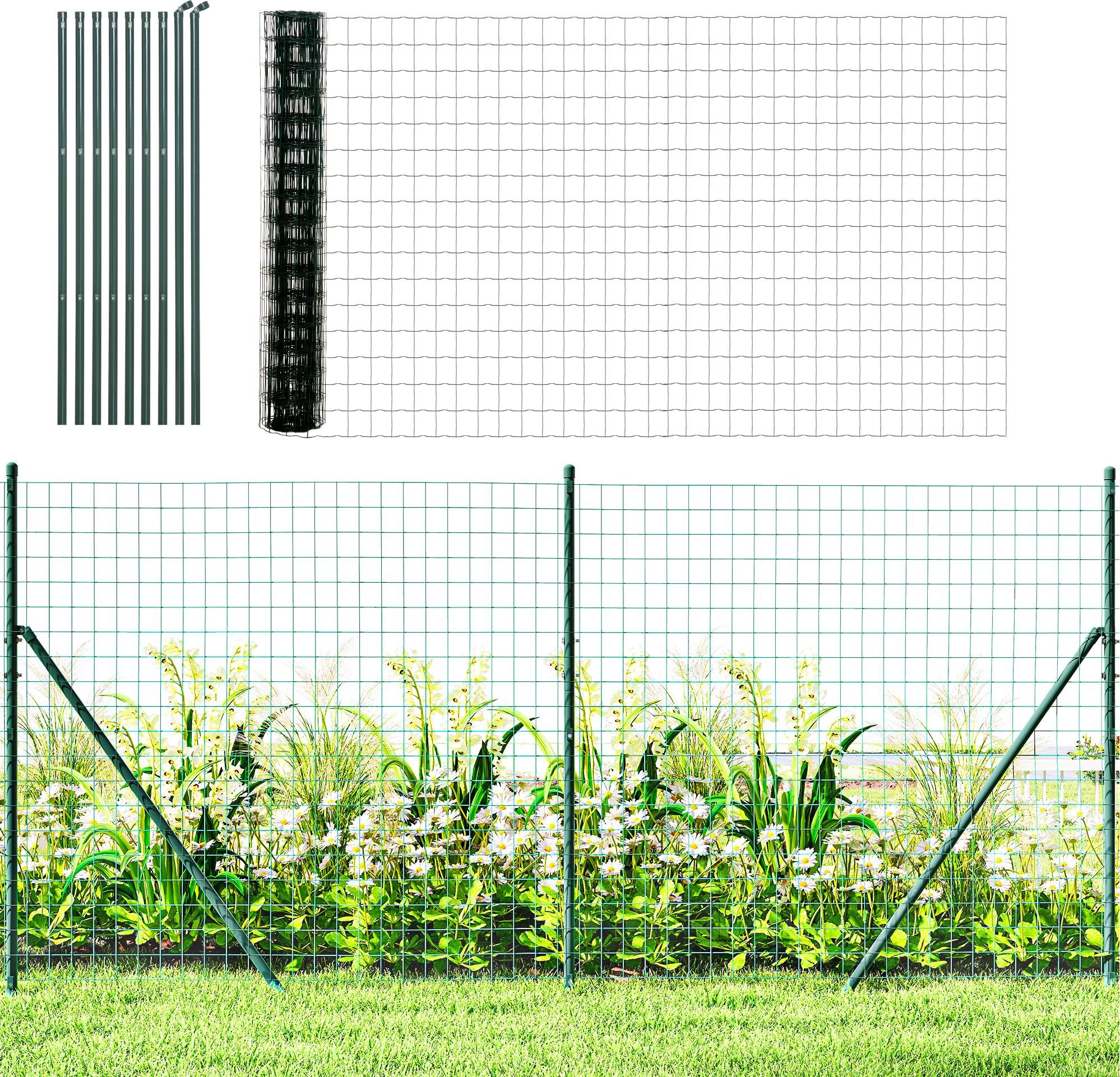 Outsunny Grillage Rouleau soudé - Maille 7,3L x 6,3l cm - Hauteur 2 m - Longueur 10 m - poteaux, Jambes de Force Inclus - Acier revêtement PVC Vert