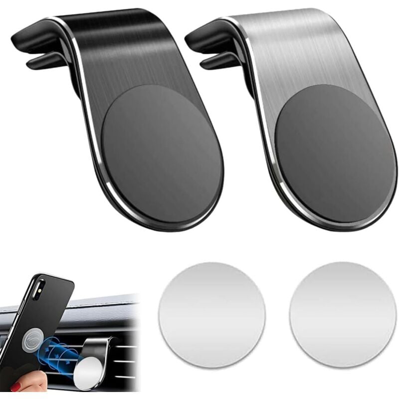 Lot de 2 supports magnétiques pour grille d'aération de voiture (noir, argent)