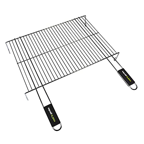 Cook’in Garden - Grille à Pied Simple, 2 Poignées, Dimensions 60 × 40 cm, Résistante aux Flammes et Hautes Températures, Manche Soft Touch Pratique, Grille Barbecue Extérieur Compatible Multi-Marques