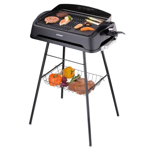 Cloer 6750 Grille de barbecue, gril avec pied amovible, protection contre les éclaboussures, panier de stockage, plaque á griller: 43 cm x 30.5 cm grille de barbecue, 2000 W,noir