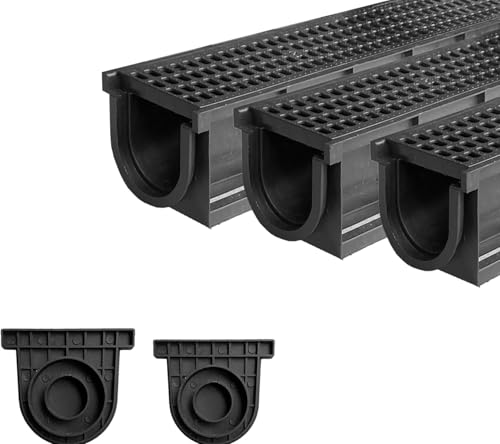 Natotela Lot de 3: 100x100x1000 mm Caniveau extérieur de Drainage en PEHD avec Grille, A15 caniveau terrasse en PEHD Noir, pour l'allée, Le Jardin, la terrasse, Le Garage