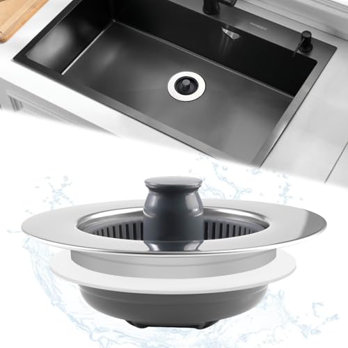 Bouchon Evier Cuisine, évier de Cuisine Passoire et Bouchon Combo, Universel 3 en 1 Coquille en Acier Inoxydable avec Passoire Anti-Colmatage, Grille Evier Cuisine-Profondeur de L'évier >22mm