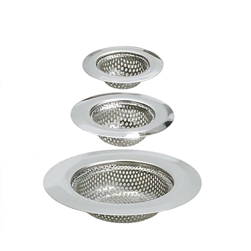 Filtre Évier Inox Lot de 3 tailles,Grille Évier Cuisine, Filtre Lavabo Salle de Bain, Filtre Baignoire Anti Cheveux,Attrape Cheveux Douche, Bonde Évier, Égouttoir de Bonde de Lavabo, Crépine Anti Clog