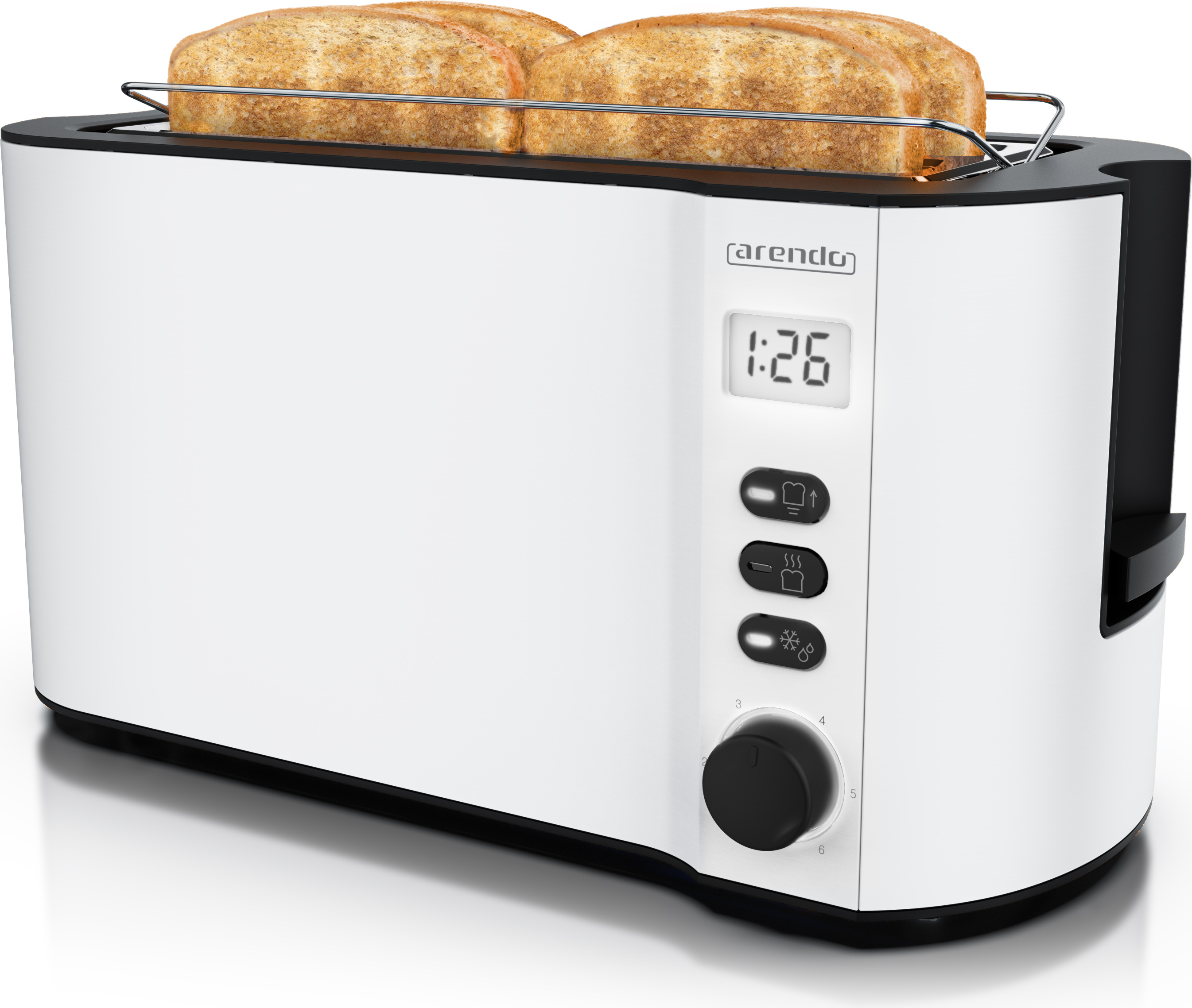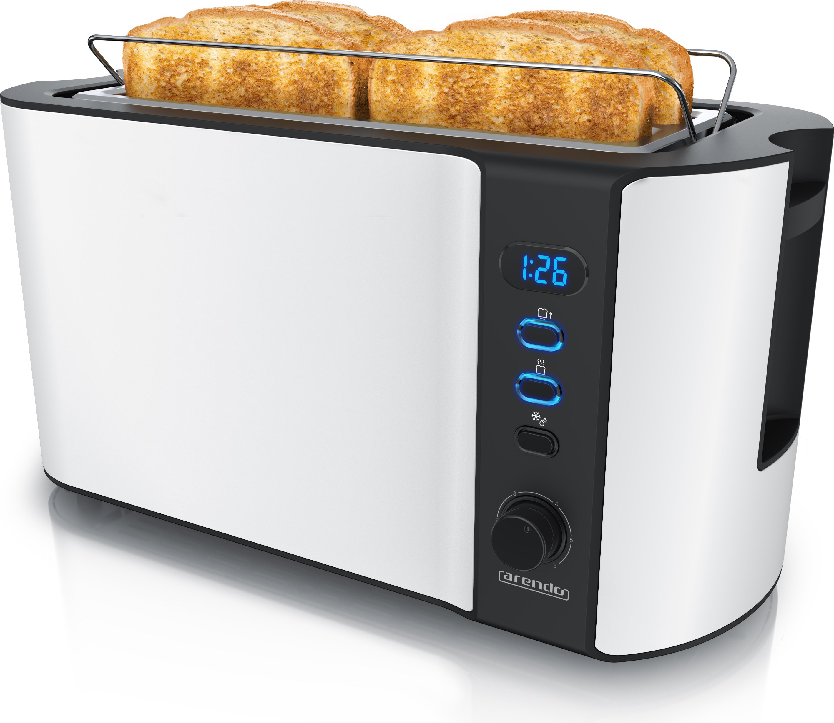 Grille-pain Arendo 4 tranches, Fente longue, Fente longue, Acier inoxydable, 1500W, Écran avec affichage du temps restant, Support à petits pains, Fonction dégivrage, Boîtier thermo-isolant, Blanc