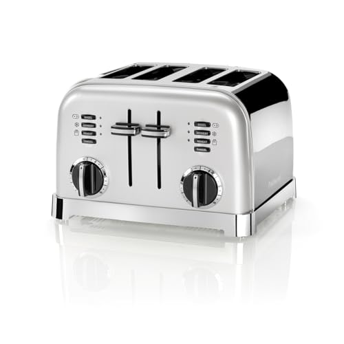 Cuisinart Grille-pain 4 tranches - Fentes larges, idéal pour le pain épais et les bagels - 6 niveaux de brunissage et décongélation - Fentes larges, Remontée maximale - Perle givrée