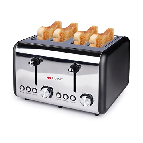alpina Grille-pain - 4 tranches de pain - 230 V/1500 W - 6 niveaux de brunissage - Décongélation - Réchauffage - Grille-pain - Argenté