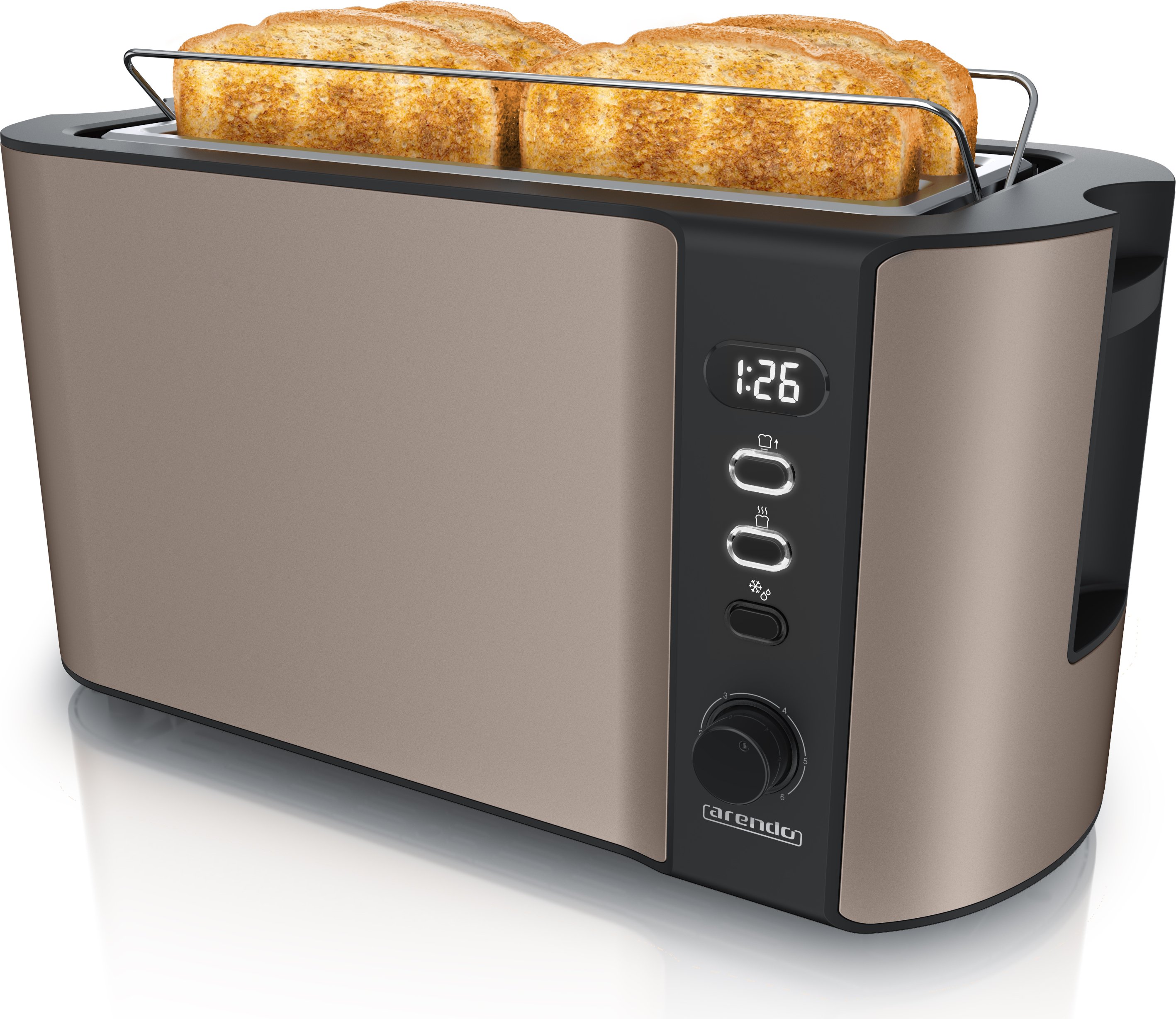 Grille-pain Arendo 4 tranches, Fente longue, Fente longue, Acier inoxydable, 1500W, Écran avec affichage du temps restant, Support à petits pains, Fonction dégivrage, Boîtier thermo-isolant, Bronze