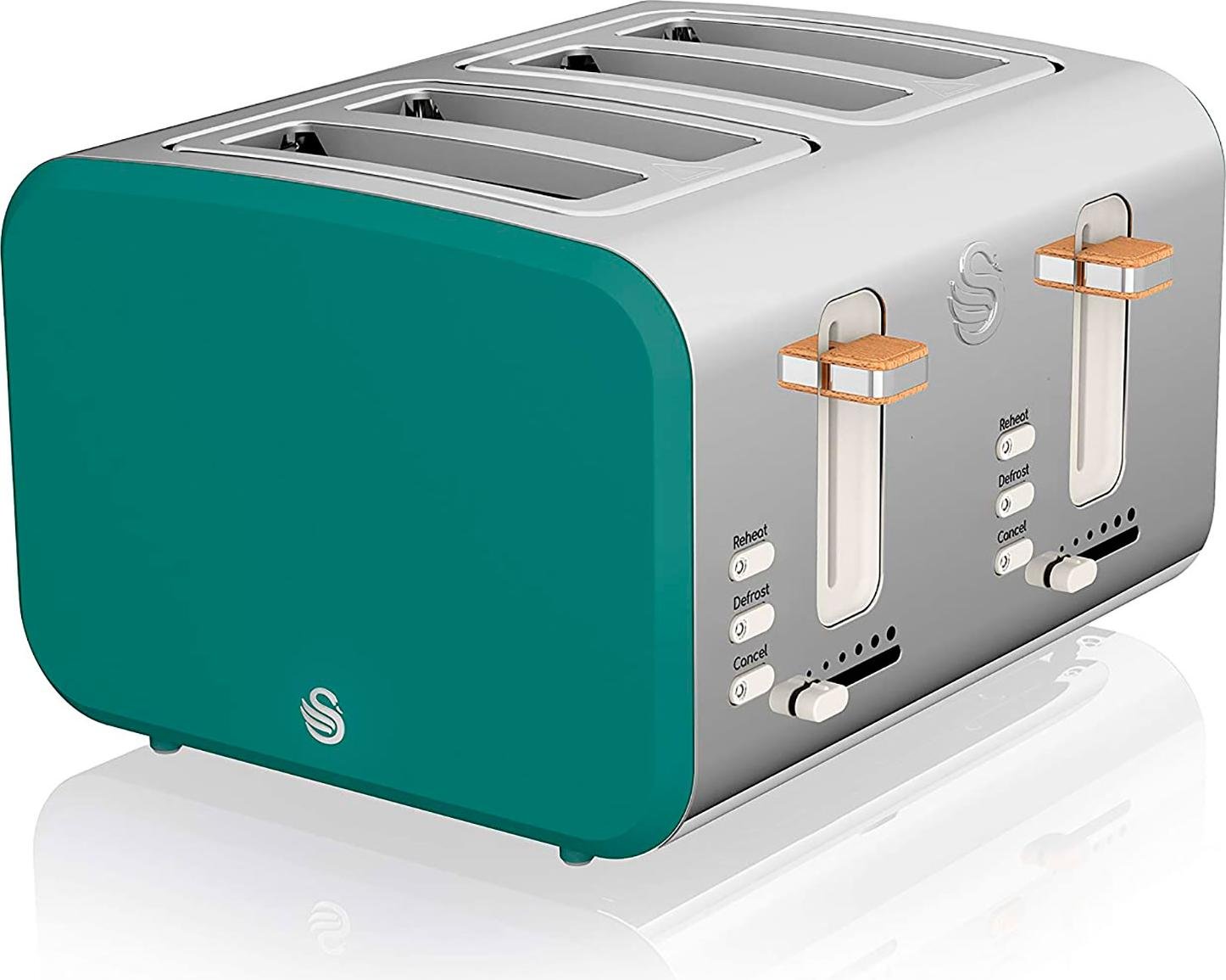 SWAN ST14620GRENEU Grille-pain à fente large 4 tranches 3 fonctions Design vert nordique