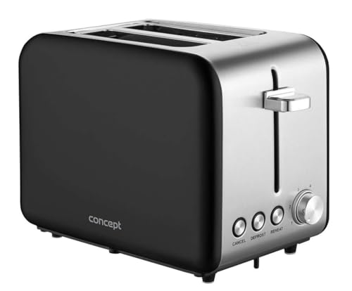 Concept TE2052 Grille-pain en acier inoxydable avec fente large 36 mm 2 chambres de rôtissage Minuteur électronique 950 W Noir mat