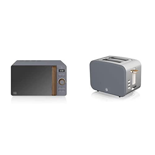 Swan Nordic Micro-ondes numérique 20 L, 6 niveaux de fonctionnement, 800 W puissance, minuterie 30 min & Nordic Grille-pain à fente large 2 tranches 3 fonctions 6 niveaux de grillage Design moderne