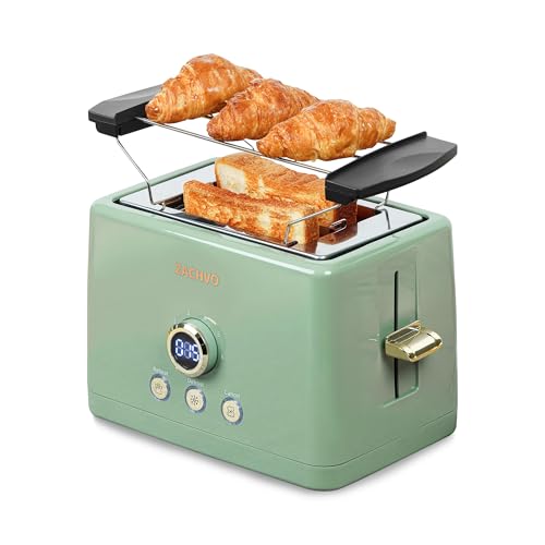 ZACHVO Grille-pain 2 tranches avec réchauffe-petits pains, 6 niveaux de brunissage, 850W, tiroir ramasse-miettes amovible, écran LED, fonction surélévation, réchauffage, décongélation, annulation