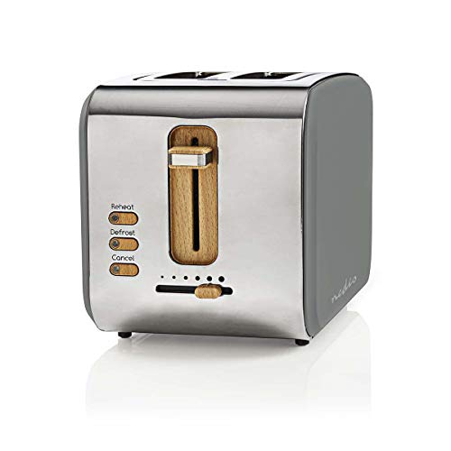 Nedis KABT510EGY Grille-pain Soft Touch pour 2 tranches de pain grillé, bagels ou muffins - Avec 6 niveaux de brunissage, fonctions de réchauffage, de décongélation et d'annulation - Gris
