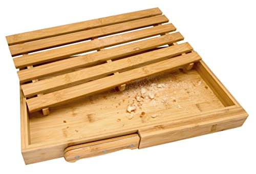 NERTHUS FIH 939 Planche à découper pour le pain en bois de bambou avec couteau en bois de bambou, couteau en acier inoxydable, grille de base amovible