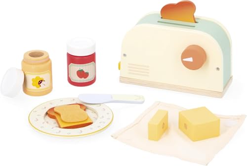 Janod - Grille Pain Enfant en Bois - Jeu Imitation Petit Déjeuner - 10 Accessoires Inclus - avec Tartines Qui Sautent - Développe Imagination - Dès 3 Ans - J06636