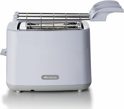 Ariete Grille-Pain Breakfast 147, Grille-Pain avec 7 Niveaux de Brunissement, Éjection Automatique, Plateau à Miettes Amovible, Bouton d'Arrêt, Pinces en Acier Inoxydable Incluses, 760W, Blanc
