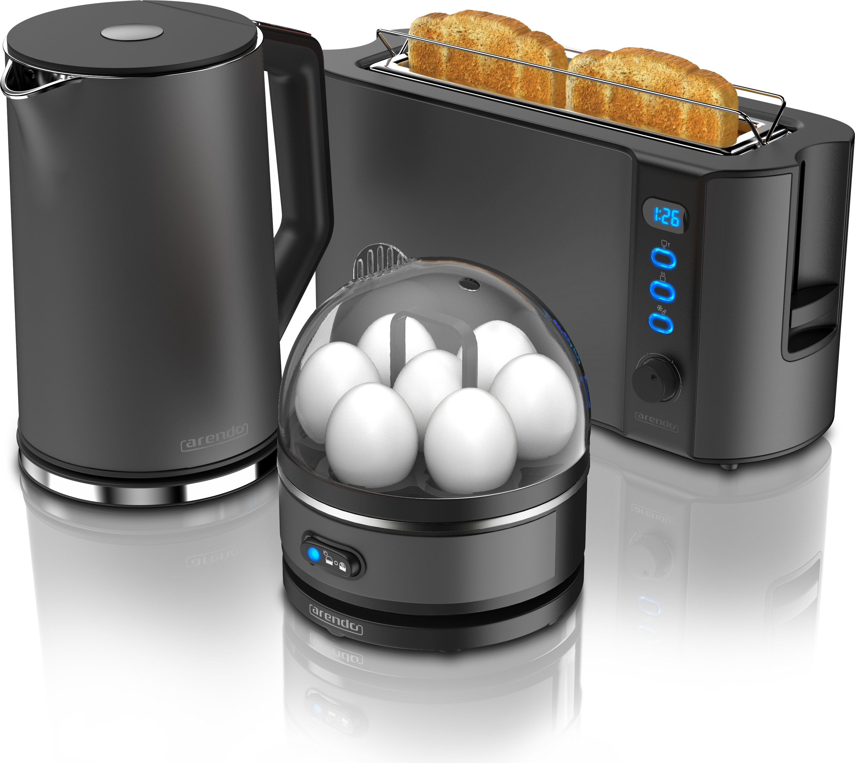 Arendo - Bouilloire avec grille-pain et cuiseur à oeufs SET Acier inoxydable gris Bouilloire 1,5L 40° - 100°C, Grille-pain 4 disques Ecran LED 6 degrés de brunissage Cuiseur à oeufs 1-7 oeufs Mesureur sans BPA