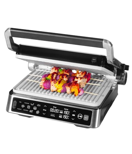 Genius Chef Barbecue de contact électrique en acier inoxydable pour sandwiches steak, plaques de cuisson amovibles, grille-pain à croque-monsieur avec 2 plaques de cuisson, lot de 6 pièces, gris