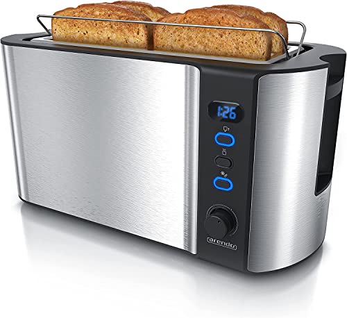 Arendo - Grille-pain en acier inoxydable avec 2 disques à fente longue - Écran tactile - Boîtier à double paroi - Support sandwich intégré - 6 degrés - Centrage du pain - Affichage du temps résiduel