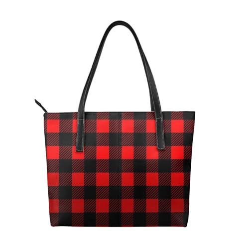 Sac à main vintage en cuir végétalien à carreaux de buffle pour femme, sac fourre-tout à grille rouge avec poignée sur le dessus, grand sac à bandoulière pour le quotidien, le travail, les voyages