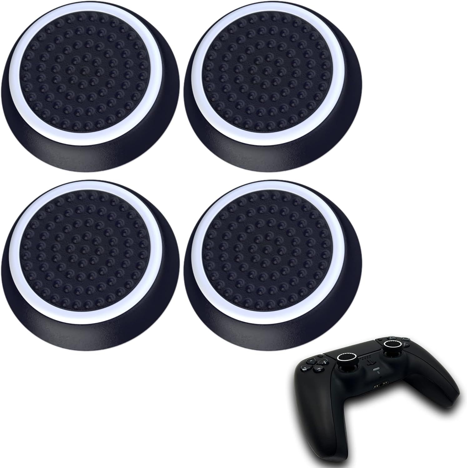 Playrealm FPS Bâton Prises de Pouce Thumbstick Grip et Prolongateur Impression Caoutchouc Silicone Poignée Couvrir 2 ensembles pour Manette PS5 Dualsenese et PS4 (Noir+Clair)