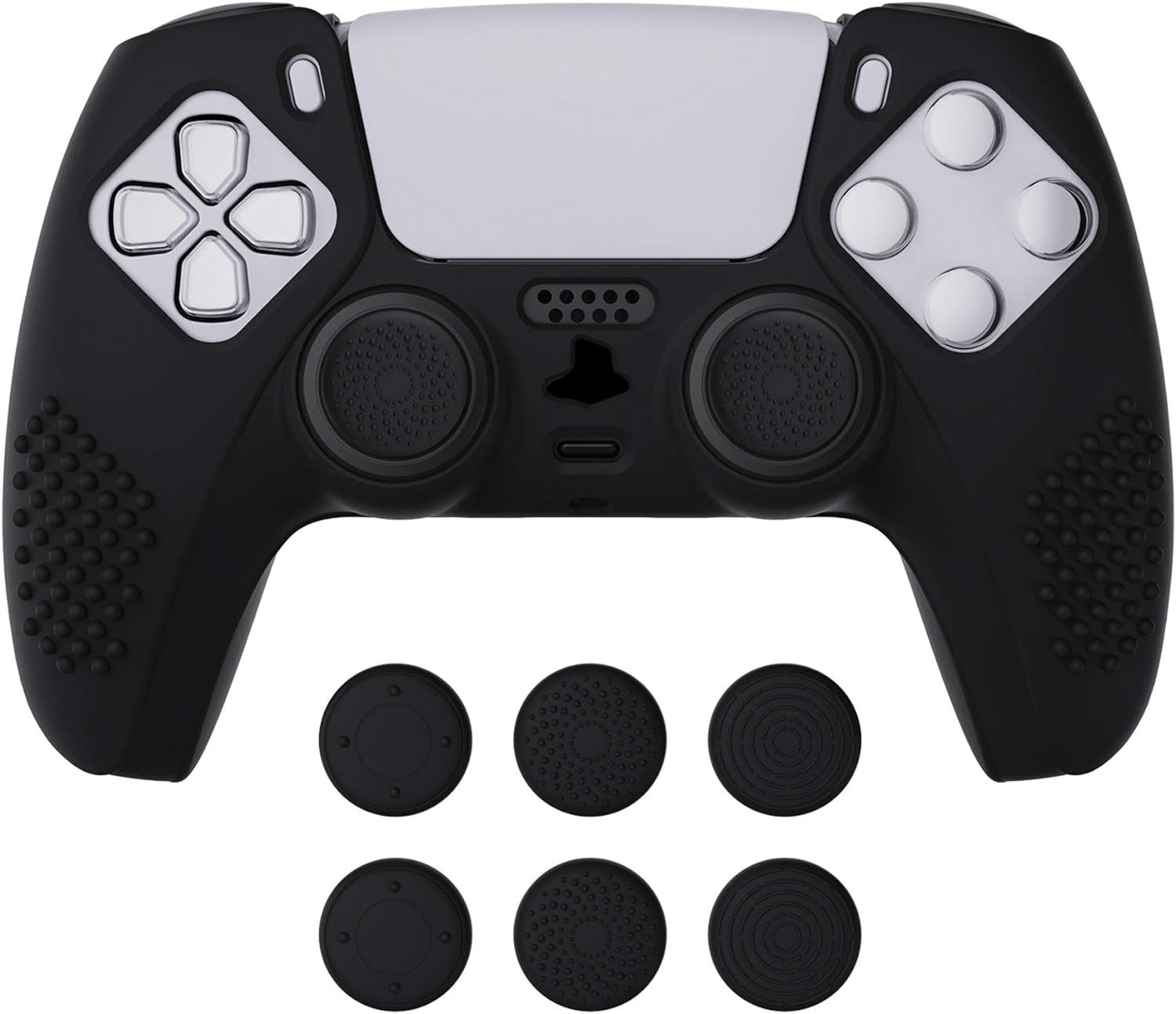 YoRHa Grip Texture Silicone Peau Coques Skin pour Manette PS5 Dualsense x 1 (Le Noir) avec Pro Thumb Grips Prises de Pouce x 8