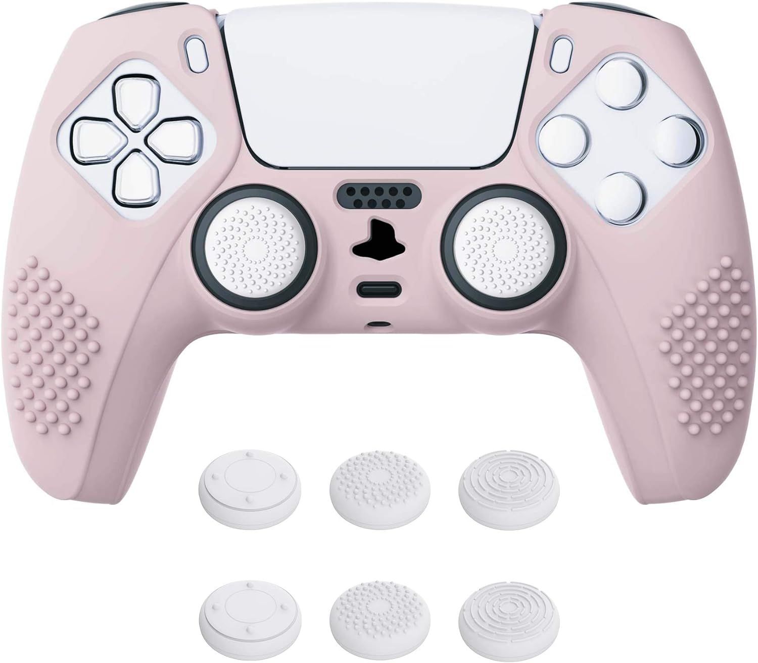 playvital Coque pour ps5 Grip Manette pour ps5 Joystick,Étui Housse Protection avec Capuchon Stick Analogique & Autocollant,Controller Cover Skin Compatible avec Station de Charge-Blanc & Rose