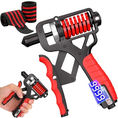 11-364 lbs Hand Grip Strengthener, Adjustable Forearm Gripper with Automatic Counter, Non-Slip Silicone Hand Exerciser Grip Strengthener for Muscle Training (Electronic Counter,red)