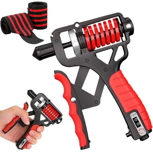 11-364 lbs Hand Grip Strengthener, Adjustable Forearm Gripper with Automatic Counter, Non-Slip Silicone Hand Exerciser Grip Strengthener for Muscle Training (Mechanical Counter,red)