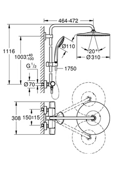 Kit de douche, Douchette à main, Mélangeur (thermostat)