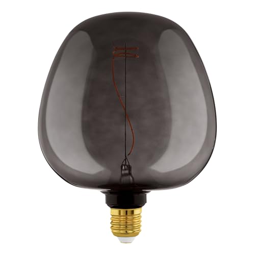 Eglo Grosse ampoule LED E27 filament spirale, lampe décorative à intensité variable, luminaire vintage en verre fumé, 4 watts, 100 lumens, blanc chaud, 2000 K, L 25,5 cm