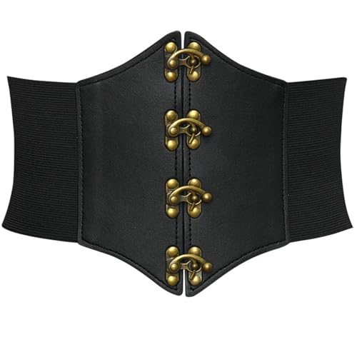 IISEEUU Grosse Ceinture Femme pour Robe Ceinture en Cuir PU for Femmes, Mode rétro, loquet, Ceinture Large élastique, Corset, décoration, Manteau de Robe(01)