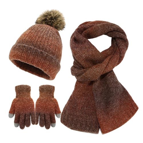 Ensemble Bonnet Echarpe Gant Femme, Gant Hiver Tactile Grosse Echarpe Chaud DéGradé Pompon Bonnet en Tricot pour ActivitéS De Plein Air avec Doublure éPaisse DéContractéS
