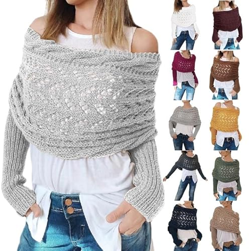 Grande Echarpe Pull Écharpe avec Manches À Crochet Foulard Femme Hiver Grosse Chic Et Elegant Décontracté 2024