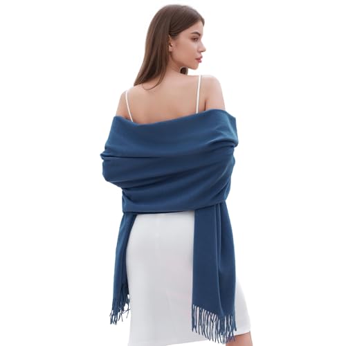 RIIQIICHY Echarpe Femme Bleu Pashmina Chale Etole Mariage Hiver Chaud Longues Grosse Echarpes et Foulards