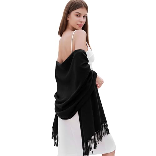 RIIQIICHY Echarpe Femme Noir Pashmina Chale Etole Mariage Hiver Chaud Longues Grosse Echarpes et Foulards