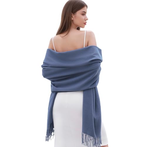 RIIQIICHY Echarpe Femme Brume Bleue Pashmina Chale Etole Mariage Hiver Chaud Longues Grosse Echarpes et Foulards