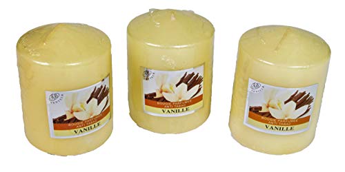 Lot De 3 Grosses Bougies Votives Decoratives Parfumées, Anti Tabac,Candles Pour La Decoration de L'Intérieur De votre Maison Et pour Créer Une Ambiance. Ivoie, Parfun Vanille 7.5x10 cm Durée 40h